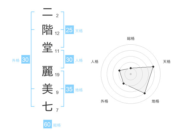 二階堂 麗美七さんの地格は35画の4点!