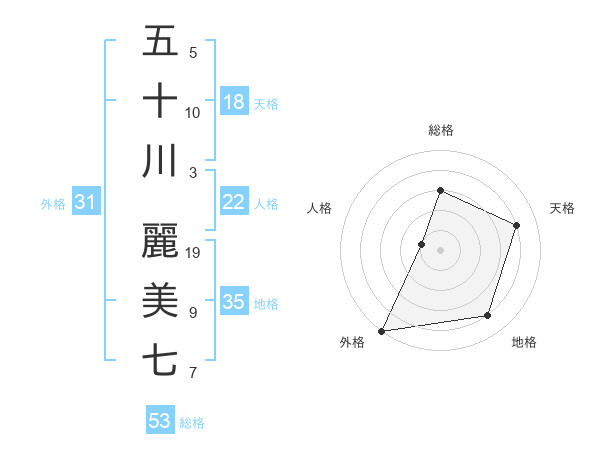 五十川 麗美七さんを姓名の画数から五運を鑑定