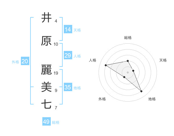 井原 麗美七さんの総格は49画の2点!