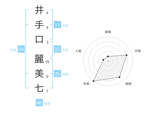 井手口 麗美七さんを姓名の画数から五運を鑑定
