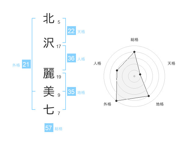 北沢 麗美七さんを姓名の画数から五運を鑑定