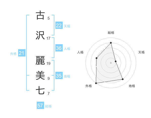 古沢 麗美七さんの総格は57画の4点!