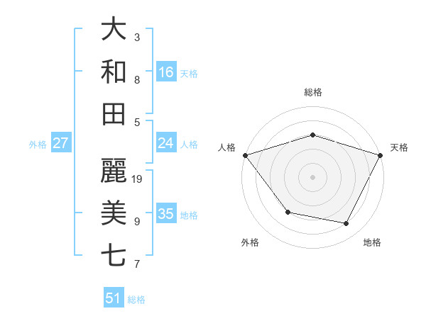 大和田 麗美七さんの総格は51画の3点!