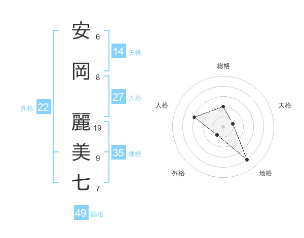 安岡 麗美七さんを姓名の画数から五運を鑑定