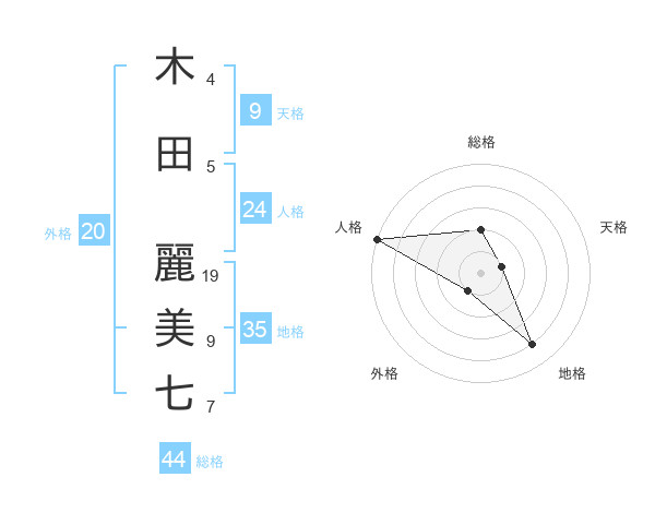 木田 麗美七さんを姓名の画数から五運を鑑定