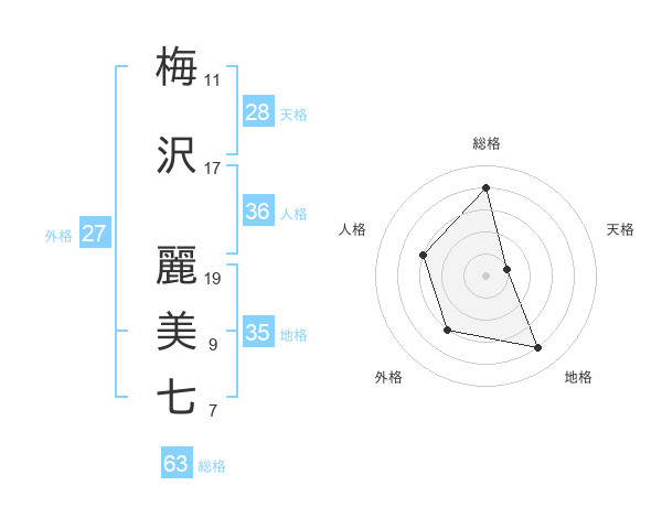 梅沢 麗美七さんを姓名の画数から五運を鑑定