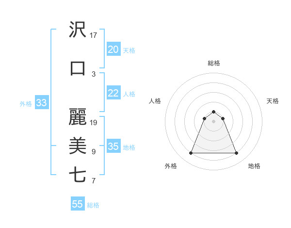 沢口 麗美七さんの総格は55画の1点!