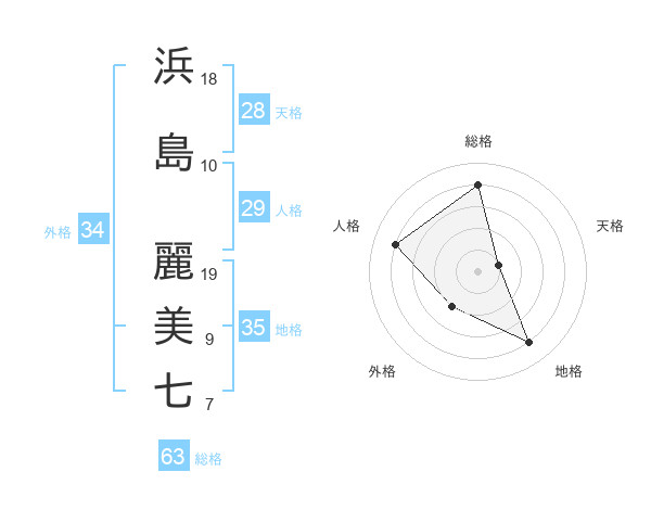 浜島 麗美七さんを姓名の画数から五運を鑑定