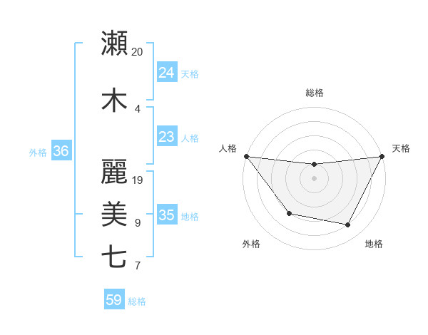 瀬木 麗美七さんの天格は24画の5点!