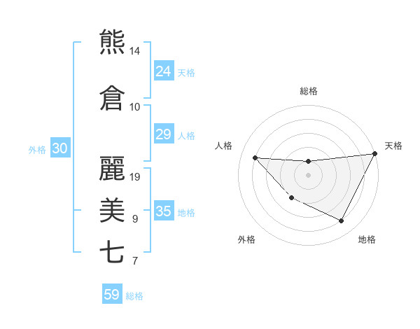 熊倉 麗美七さんを姓名の画数から五運を鑑定