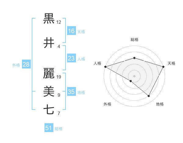 黒井 麗美七さんを姓名の画数から五運を鑑定