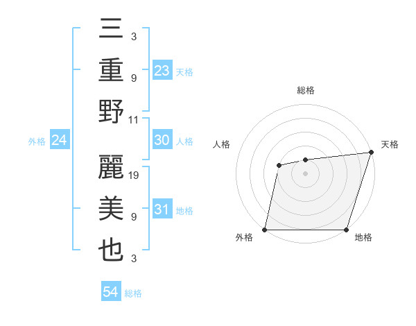 三重野 麗美也さんを姓名の画数から五運を鑑定