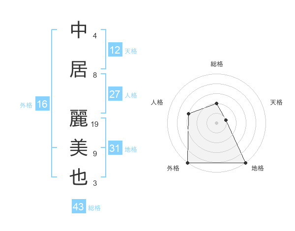 中居 麗美也さんを姓名の画数から五運を鑑定
