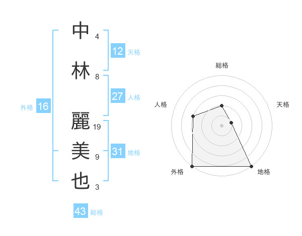 中林 麗美也さんを姓名の画数から五運を鑑定