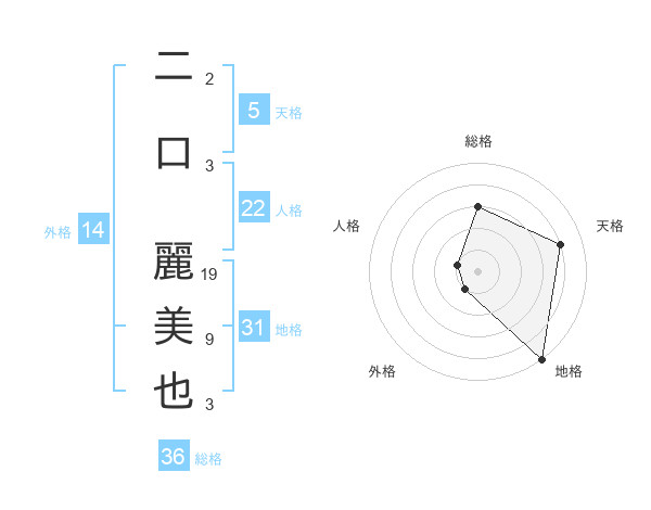二口 麗美也さんの天格は5画の4点!