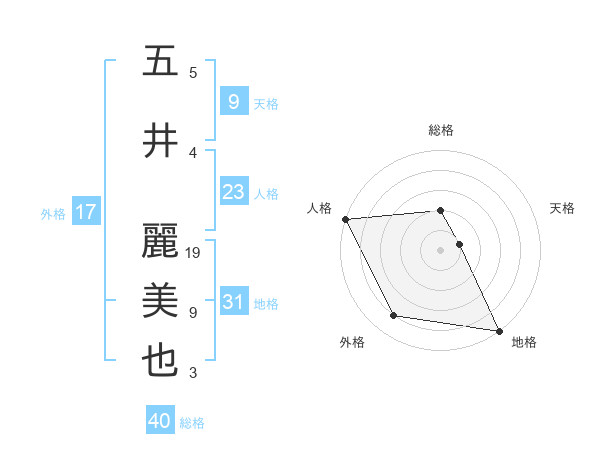 五井 麗美也さんの総格は40画の2点!