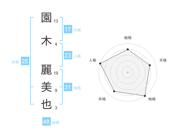 園木 麗美也さんを姓名の画数から五運を鑑定
