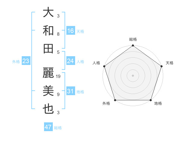 大和田 麗美也さんを姓名の画数から五運を鑑定