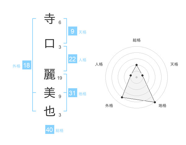 寺口 麗美也さんの総格は40画の2点!