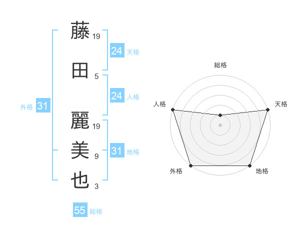 藤田 麗美也さんの天格は24画の5点!