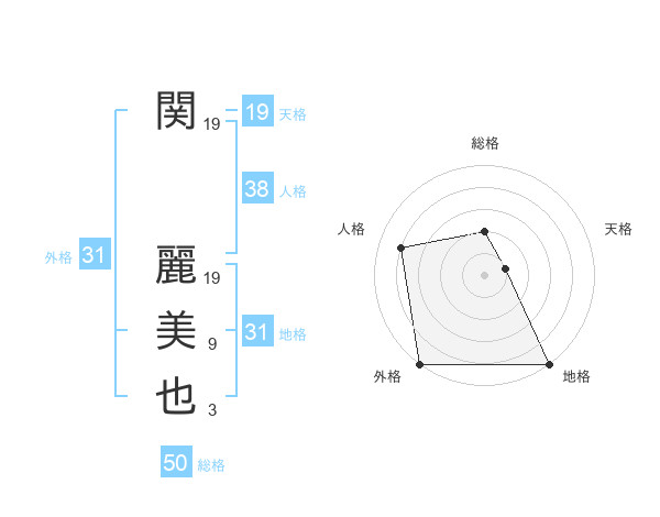 関 麗美也さんの総格は50画の2点!