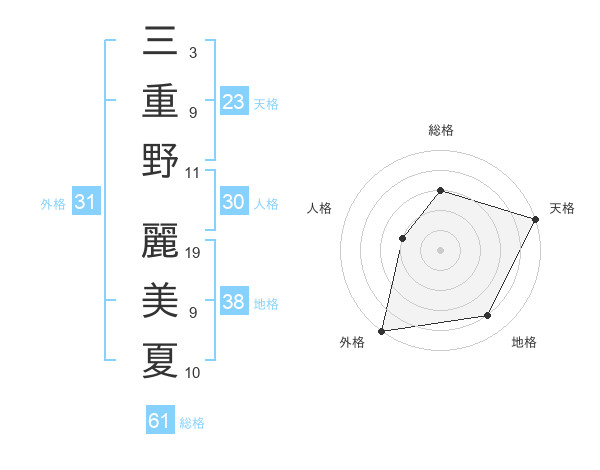 三重野 麗美夏さんを姓名の画数から五運を鑑定