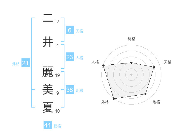 二井 麗美夏さんの天格は6画の4点!