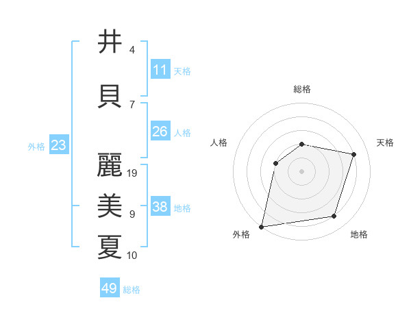 井貝 麗美夏さんの天格は11画の4点!