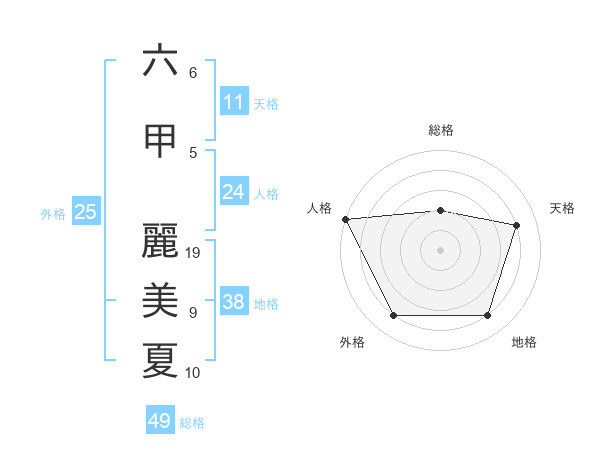 六甲 麗美夏さんを姓名の画数から五運を鑑定