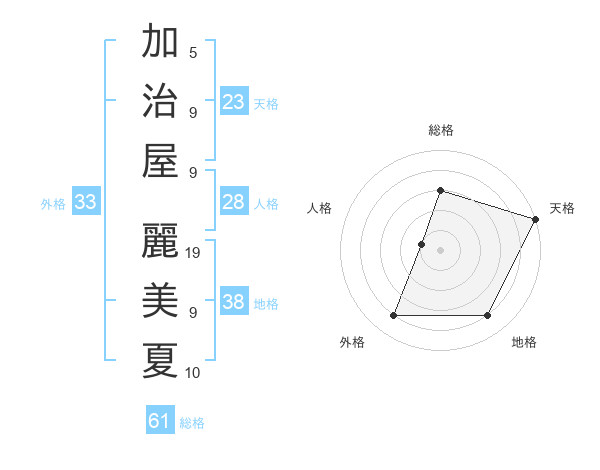 加治屋 麗美夏さんを姓名の画数から五運を鑑定