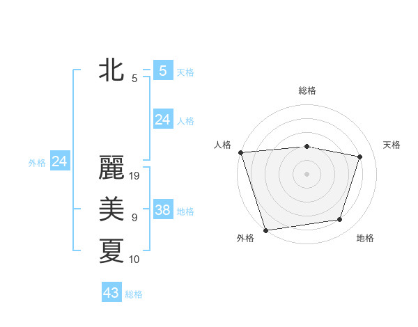 北 麗美夏さんの外格は24画の5点!