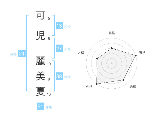 可児 麗美夏さんの総格は51画の3点!