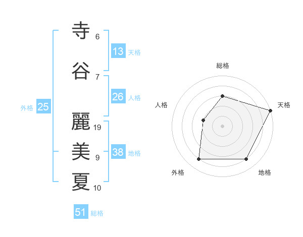 寺谷 麗美夏さんを姓名の画数から五運を鑑定