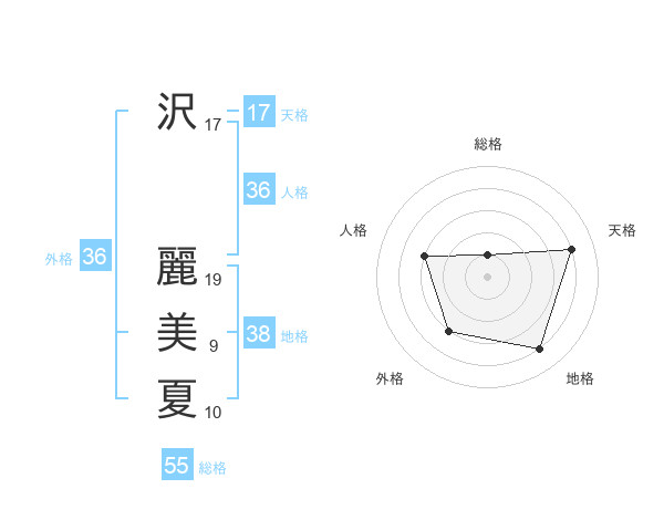 沢 麗美夏さんの総格は55画の1点!