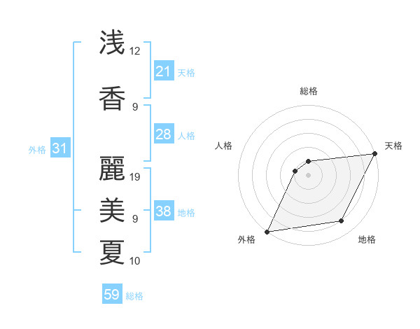 浅香 麗美夏さんを姓名の画数から五運を鑑定