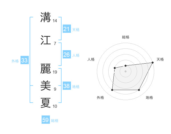 溝江 麗美夏さんの天格は21画の5点!