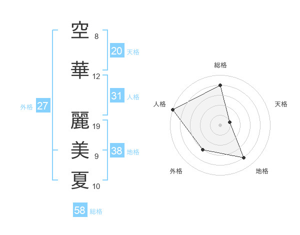 空華 麗美夏さんを姓名の画数から五運を鑑定