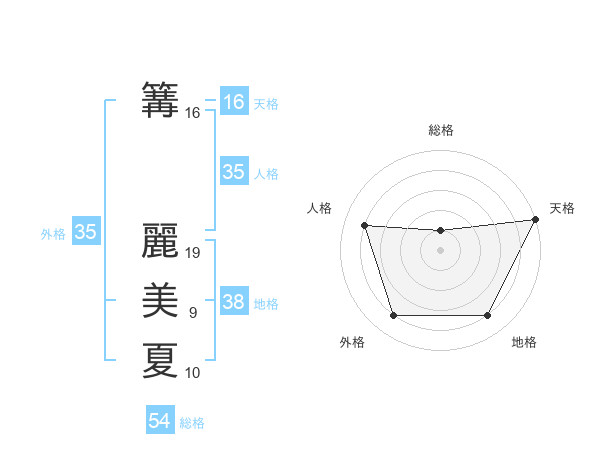 篝 麗美夏さんを姓名の画数から五運を鑑定