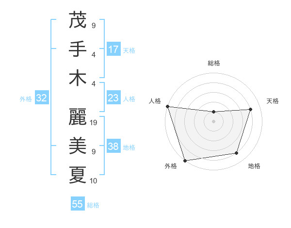 茂手木 麗美夏さんを姓名の画数から五運を鑑定