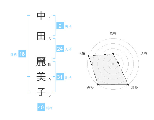 中田 麗美子さんを姓名の画数から五運を鑑定