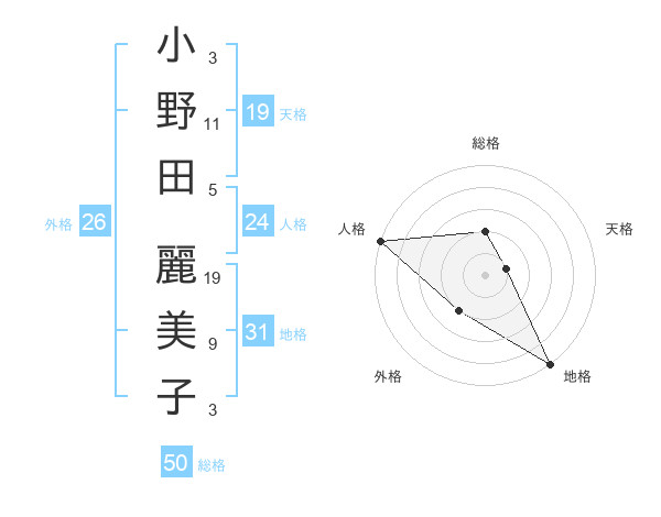 小野田 麗美子さんを姓名の画数から五運を鑑定