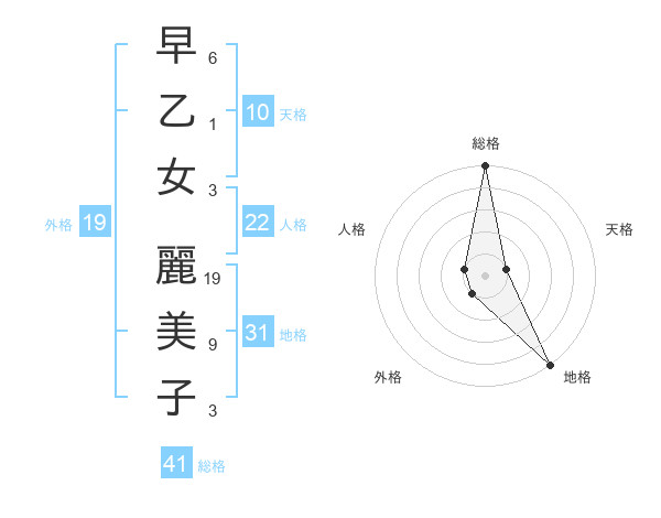 早乙女 麗美子さんを姓名の画数から五運を鑑定