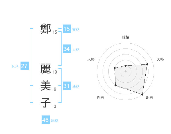 鄭 麗美子さんの外格は27画の3点!