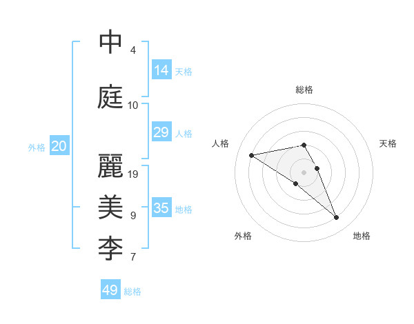 中庭 麗美李さんを姓名の画数から五運を鑑定
