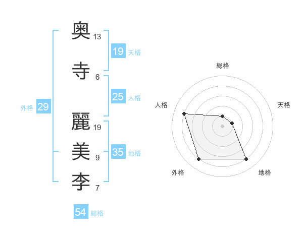 奥寺 麗美李さんを姓名の画数から五運を鑑定