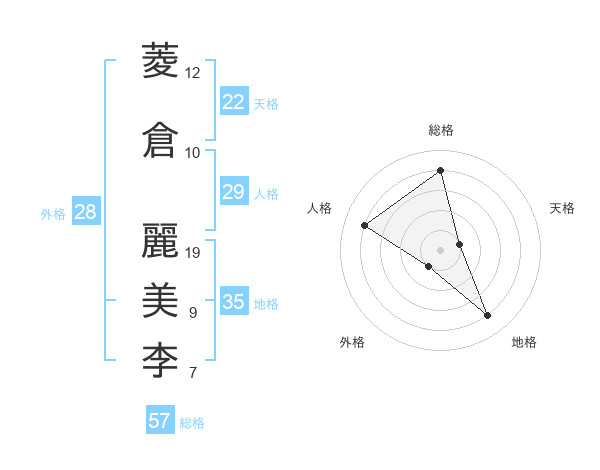 菱倉 麗美李さんの総格は57画の4点!