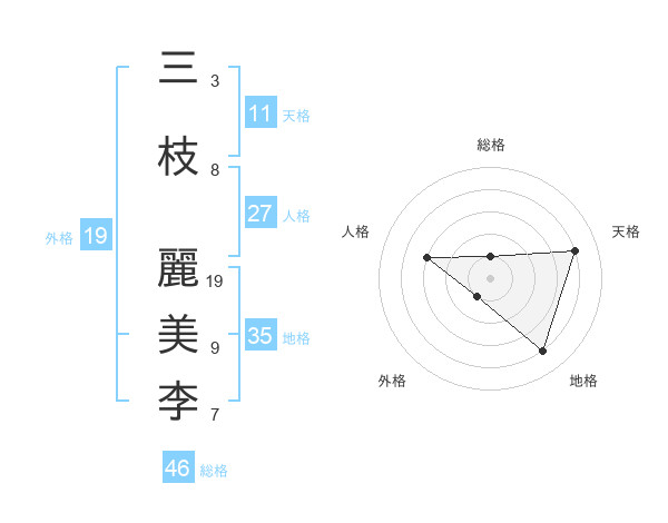 三枝 麗美李さんの地格は35画の4点!