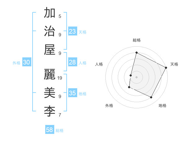 加治屋 麗美李さんを姓名の画数から五運を鑑定