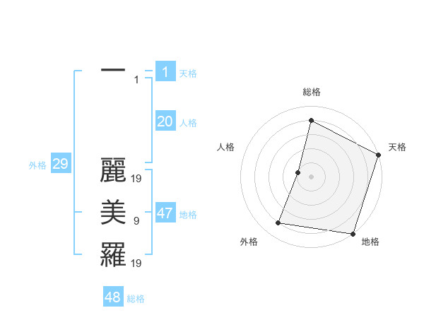 一 麗美羅さんを姓名の画数から五運を鑑定