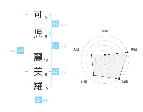 可児 麗美羅さんの総格は60画の1点!